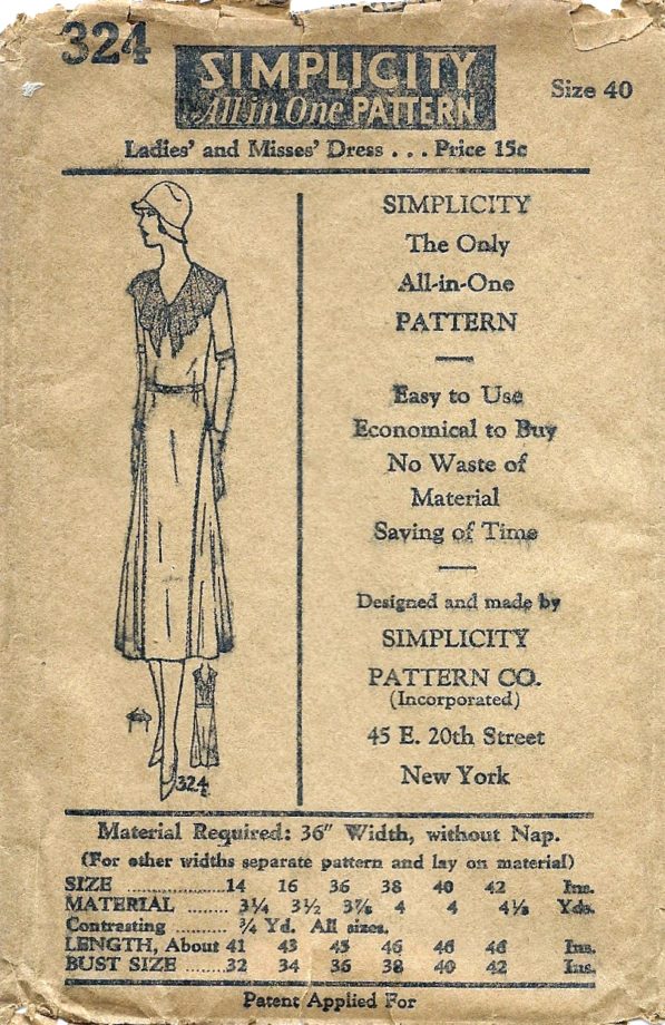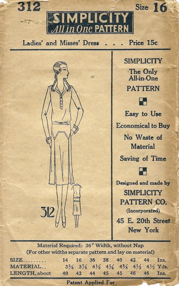 Simplicity 324Adult Patterns, Pattern Project Ladies‘ and Misses’ dress Size 40 1930 Simplicity 324 Read More »