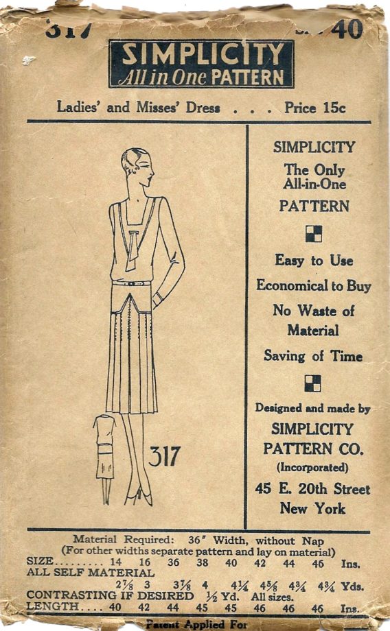 Simplicity 317Adult Patterns, Pattern Project Ladies’ and Misses’ Dress Size 40 1930 Simplicity 317 Read More »