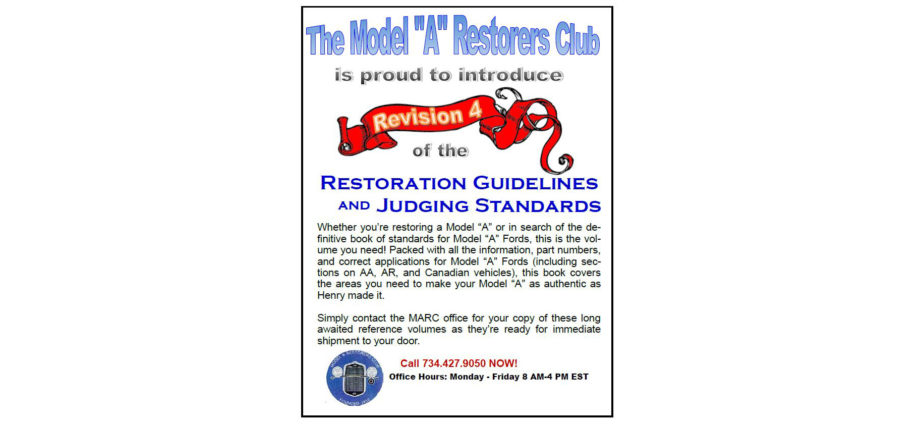 The long awaited Revision 4 of the Model “A” Restoration Guidelines and Judging Standards has been announced. Complete Judging Standards