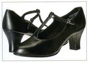 Shoes should be made of leather for day/ afternoon wear or possibly satin for evening wear. Daytime dresses look best with a mid-rise classic heel profile. Capezio is a company which still produces a t-strap and “Mary Jane” styles. Fabric and canvas were materials used in very casual, sporting or beach shoes.